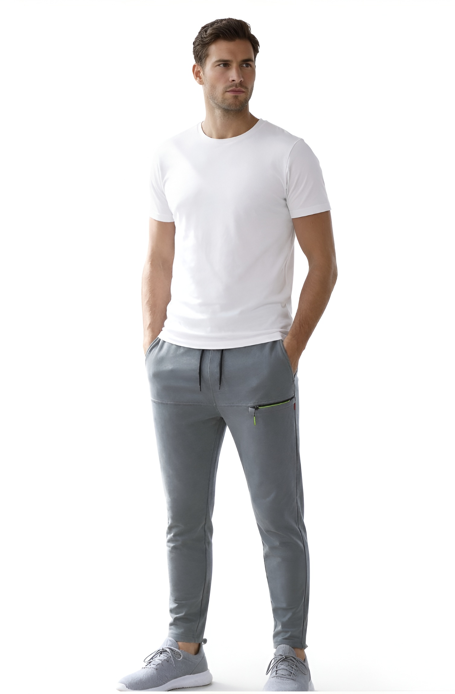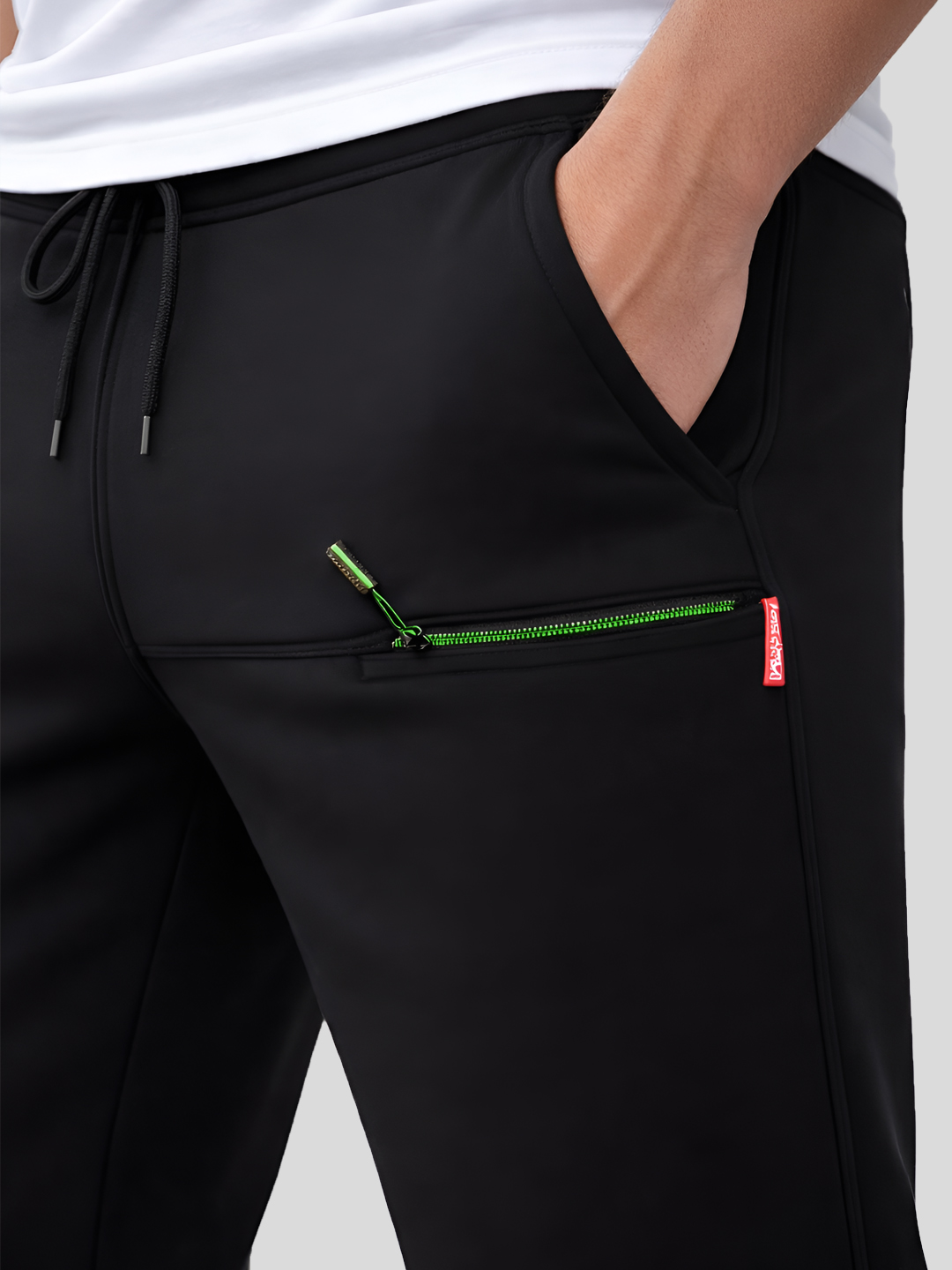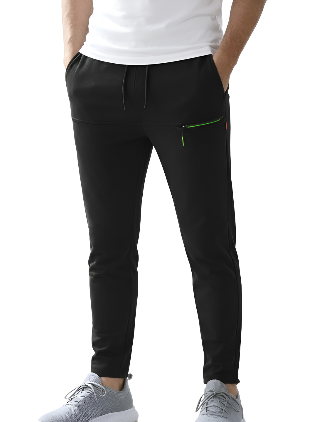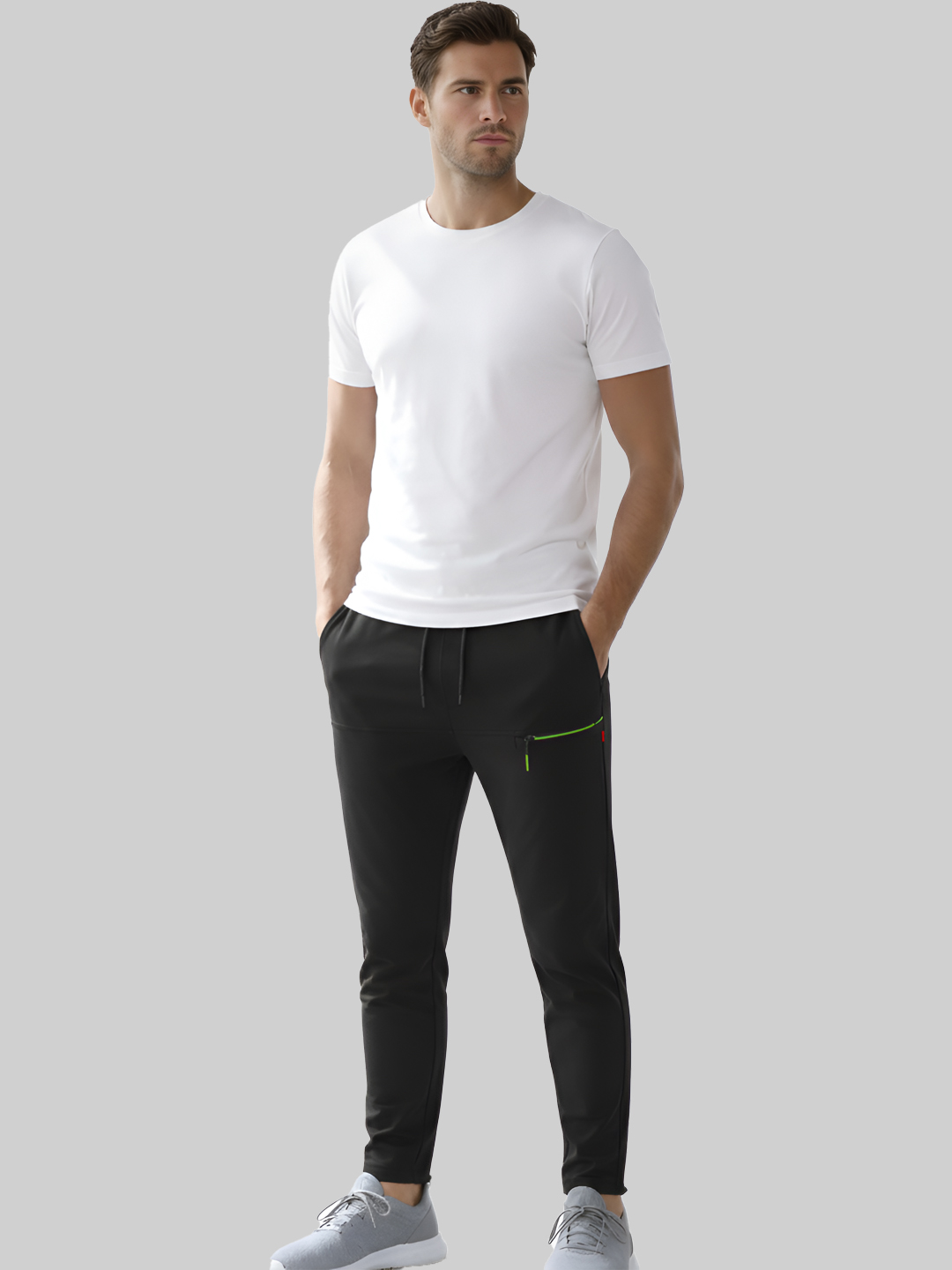 Designed with a modern tapered fit, they deliver a clean, sporty look without compromising comfort. The elastic waistband with adjustable drawstring ensures a secure and personalized fit, while 4 functional pockets offer plenty of space to carry your essentials. A sleek zippered pocket adds extra security and a stylish touch.