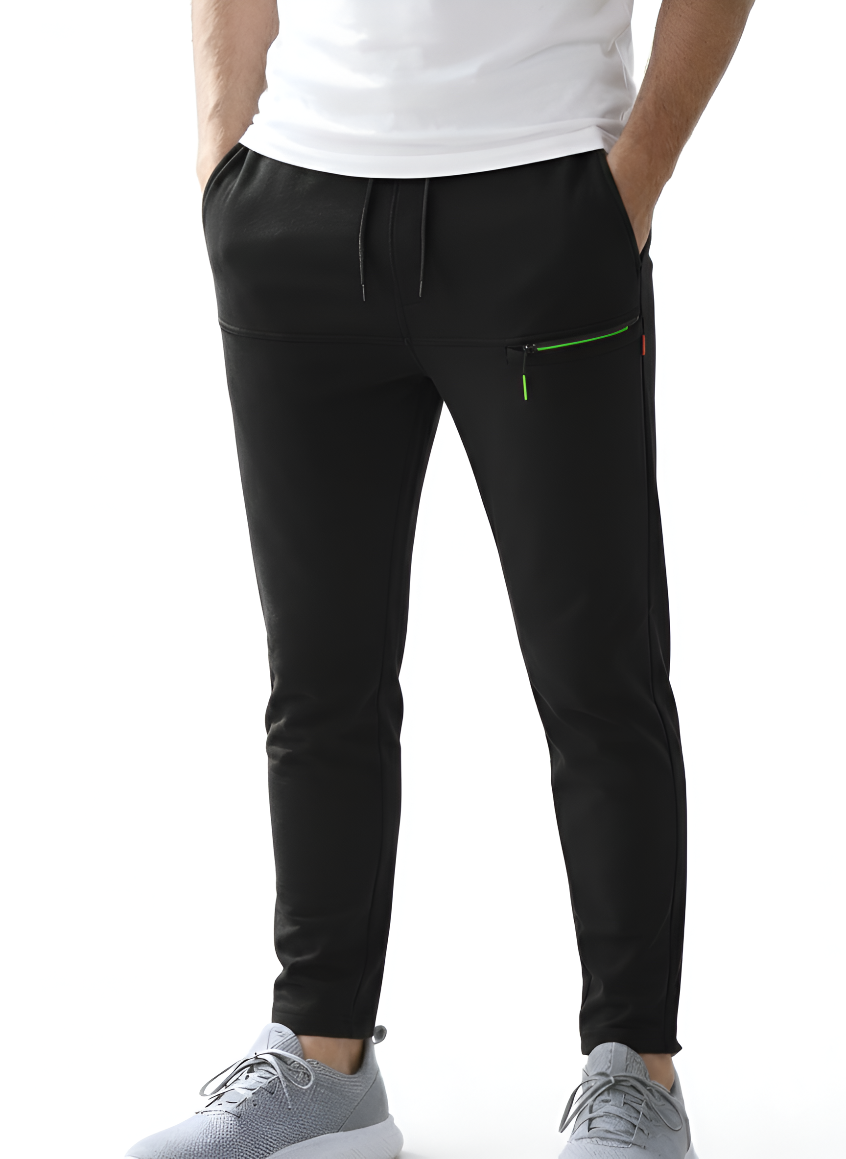 Designed with a modern tapered fit, they deliver a clean, sporty look without compromising comfort. The elastic waistband with adjustable drawstring ensures a secure and personalized fit, while 4 functional pockets offer plenty of space to carry your essentials. A sleek zippered pocket adds extra security and a stylish touch.