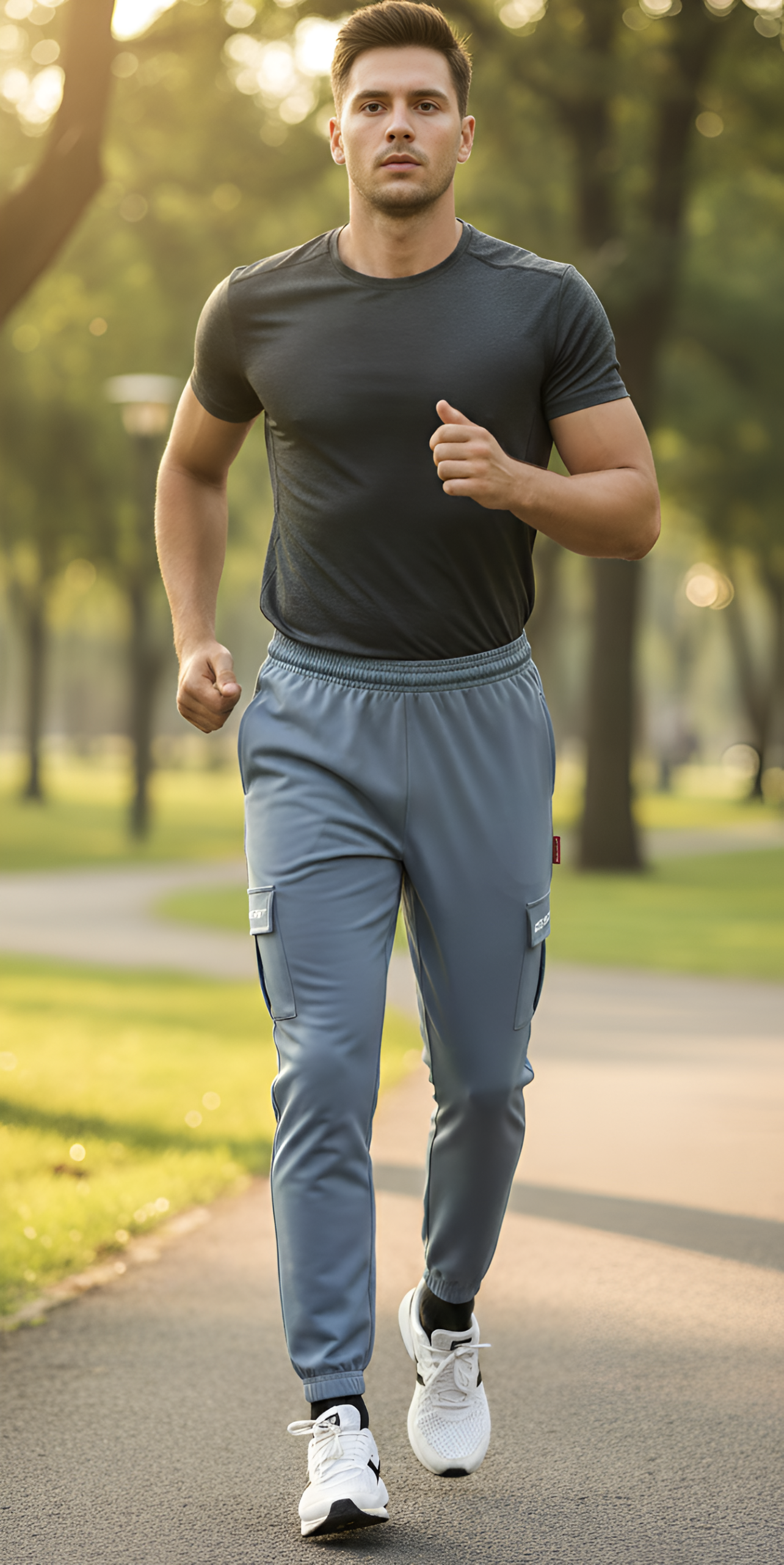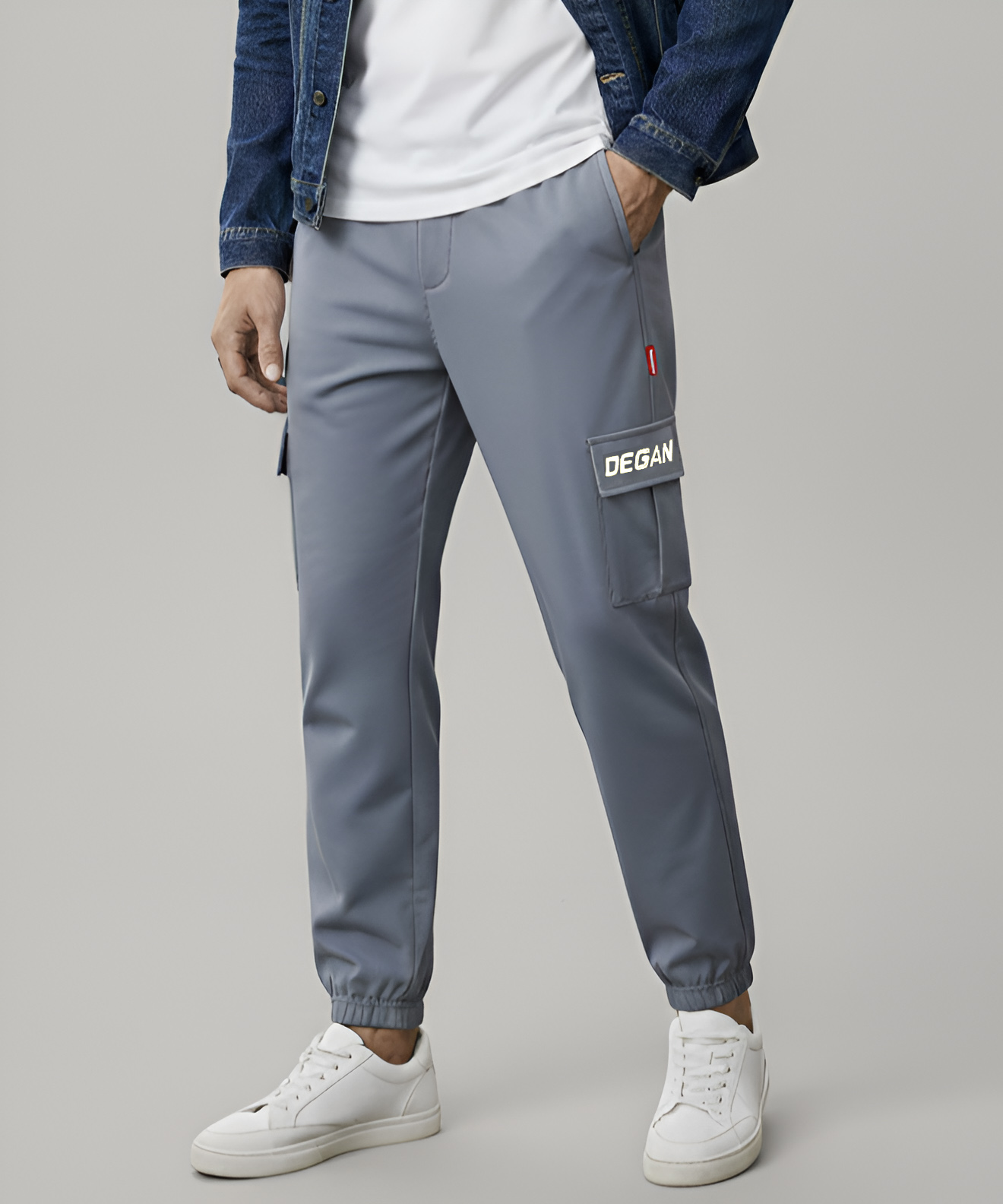 Upgrade your everyday style with these modern cargo jogger trousers, designed for comfort and functionality. Crafted from a smooth, durable fabric, they feature a slim tapered fit with elasticated cuffs for a clean, contemporary look. The side cargo pocket with flap detail adds practical storage and a utility-inspired edge, while the regular side pockets keep essentials within easy reach. Finished in a versatile slate grey tone, these trousers are perfect for casual wear, travel, or street-style outfits, offering all-day comfort with a polished finish.