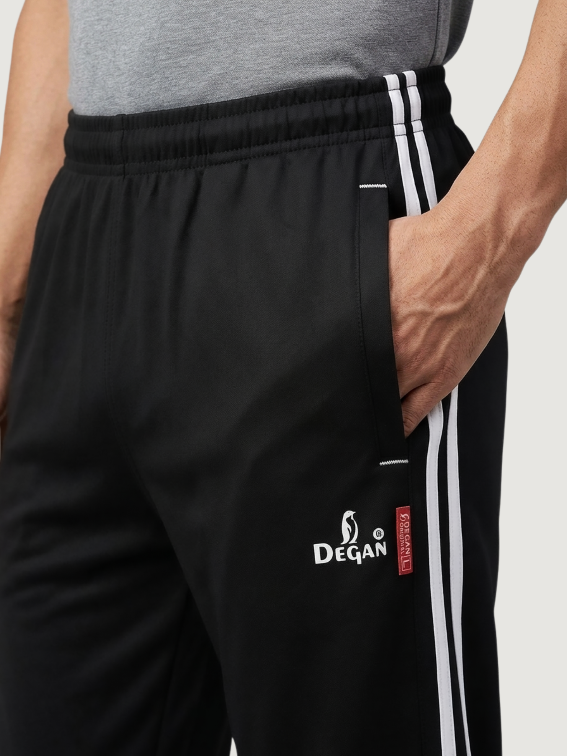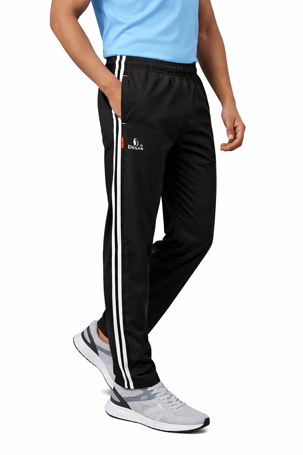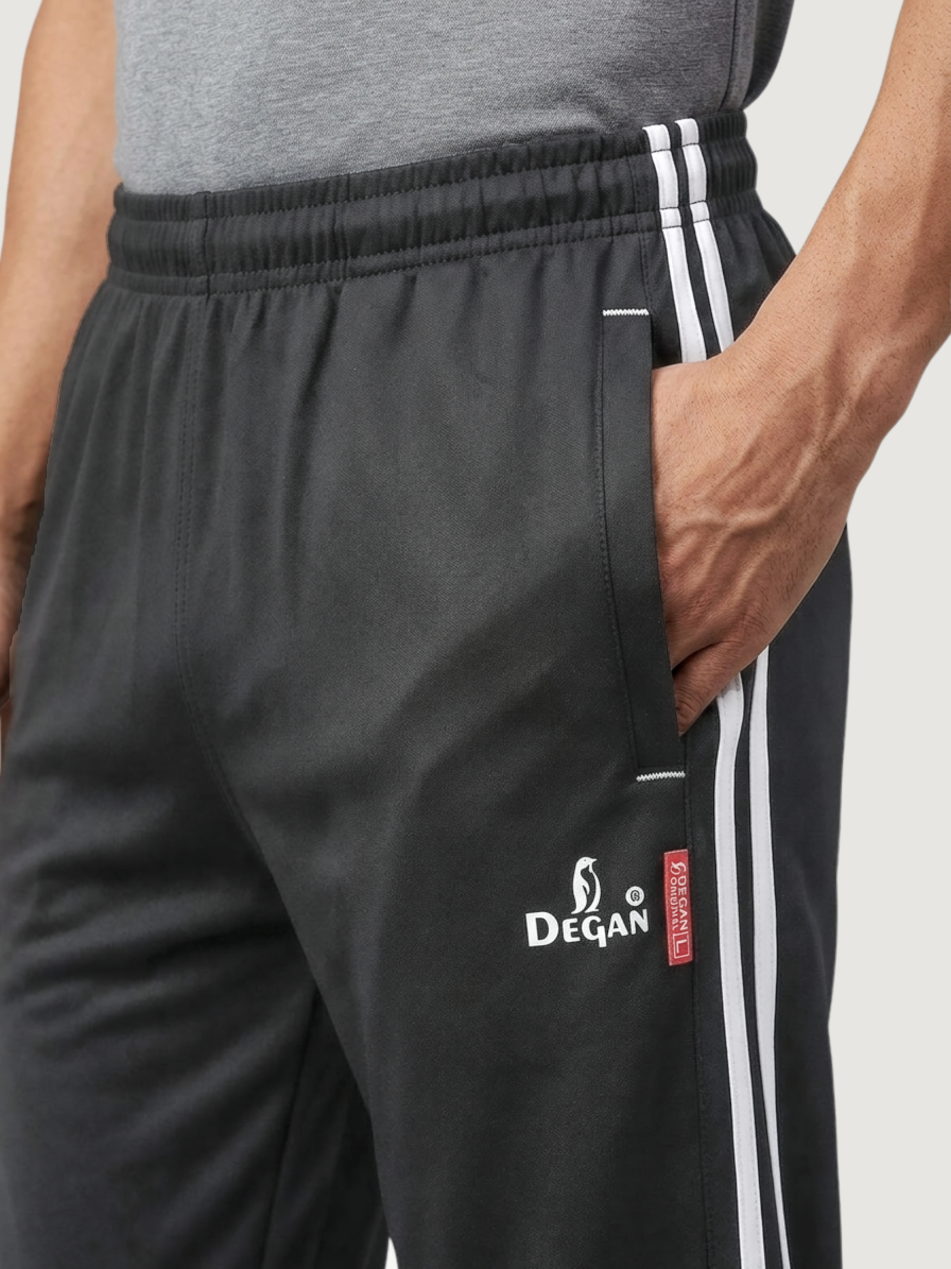 The Ultimate Performance Lower. Experience the premium feel of Degan Sport. These track pants feature a sleek, tapered silhouette and our signature dual-stripe design. Made with high-GSM Taiwan Lycra, they provide a smooth, professional finish that works just as well for a morning run as it does for a casual day out.