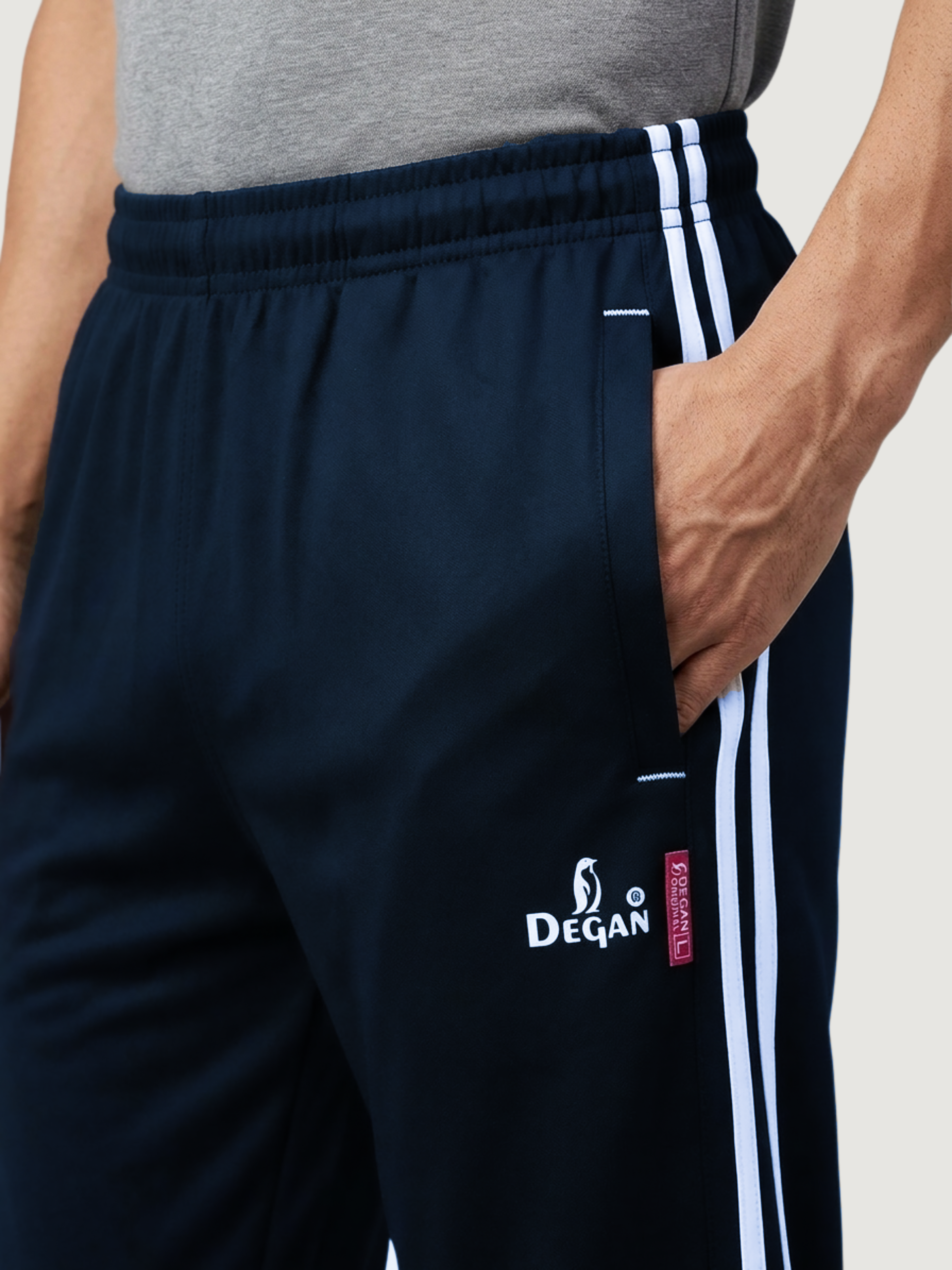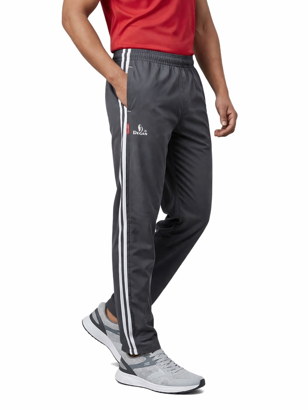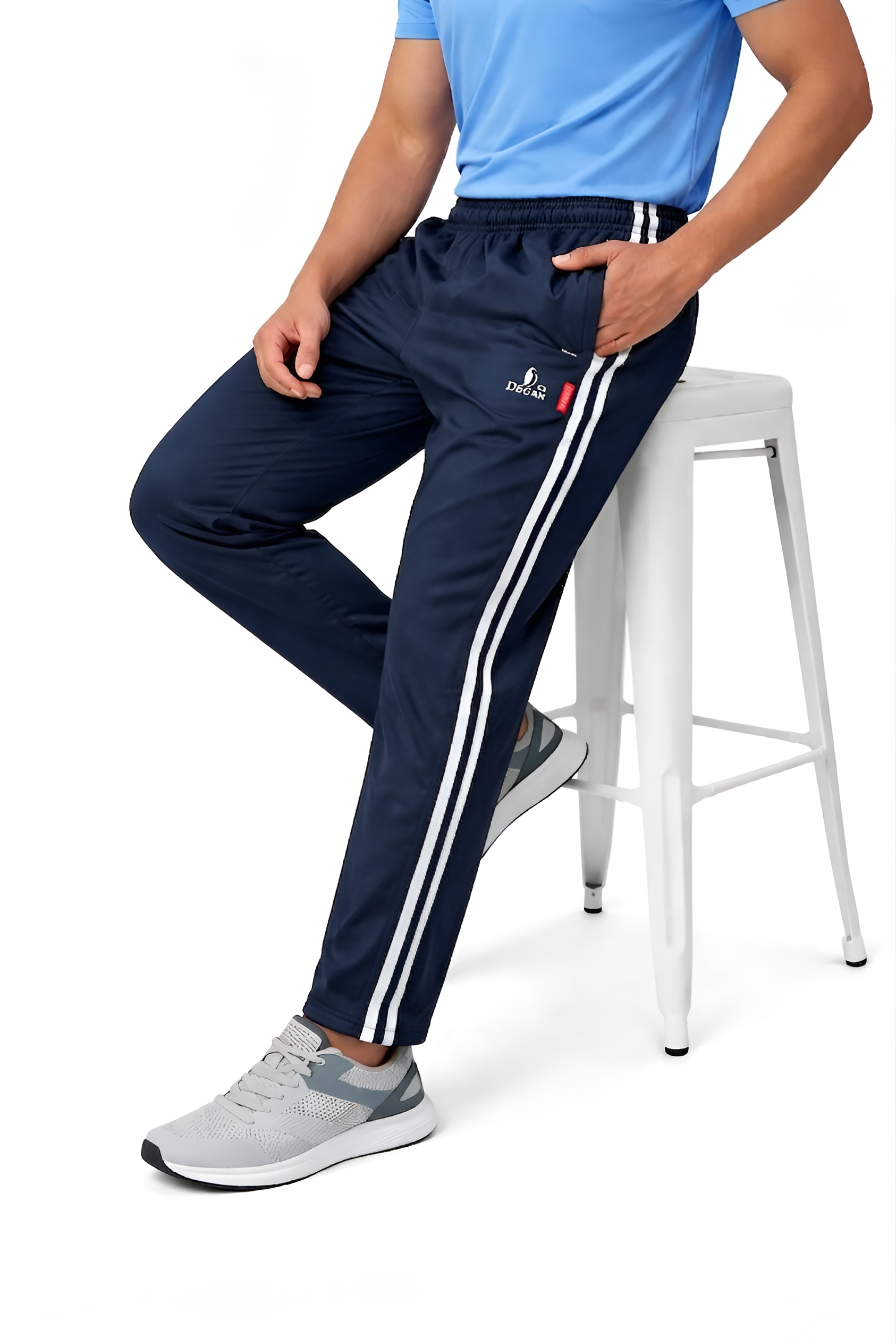 The Ultimate Performance Lower. Experience the premium feel of Degan Sport. These track pants feature a sleek, tapered silhouette and our signature dual-stripe design. Made with high-GSM Taiwan Lycra, they provide a smooth, professional finish that works just as well for a morning run as it does for a casual day out.